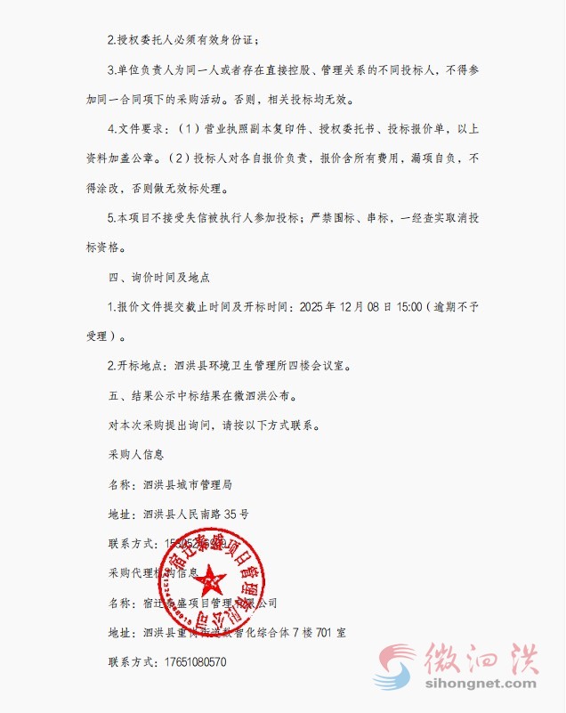五、结果公示中标结果在微泗洪公布。